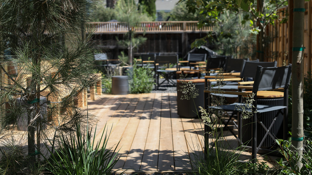 This is the jumping off point for all your adventures with Obsidian Wine Co. A welcoming workspace and tasting room that opens wholeheartedly to a well-kept native garden. The plants, materials, and projected images tie you back to the mountain in Lake County where Obsidian grows their grapes. The elegant and hefty custom furniture is made from Hungarian oak by the same craftsmen who make Obsidian's wine barrels in Kádár Hungary.